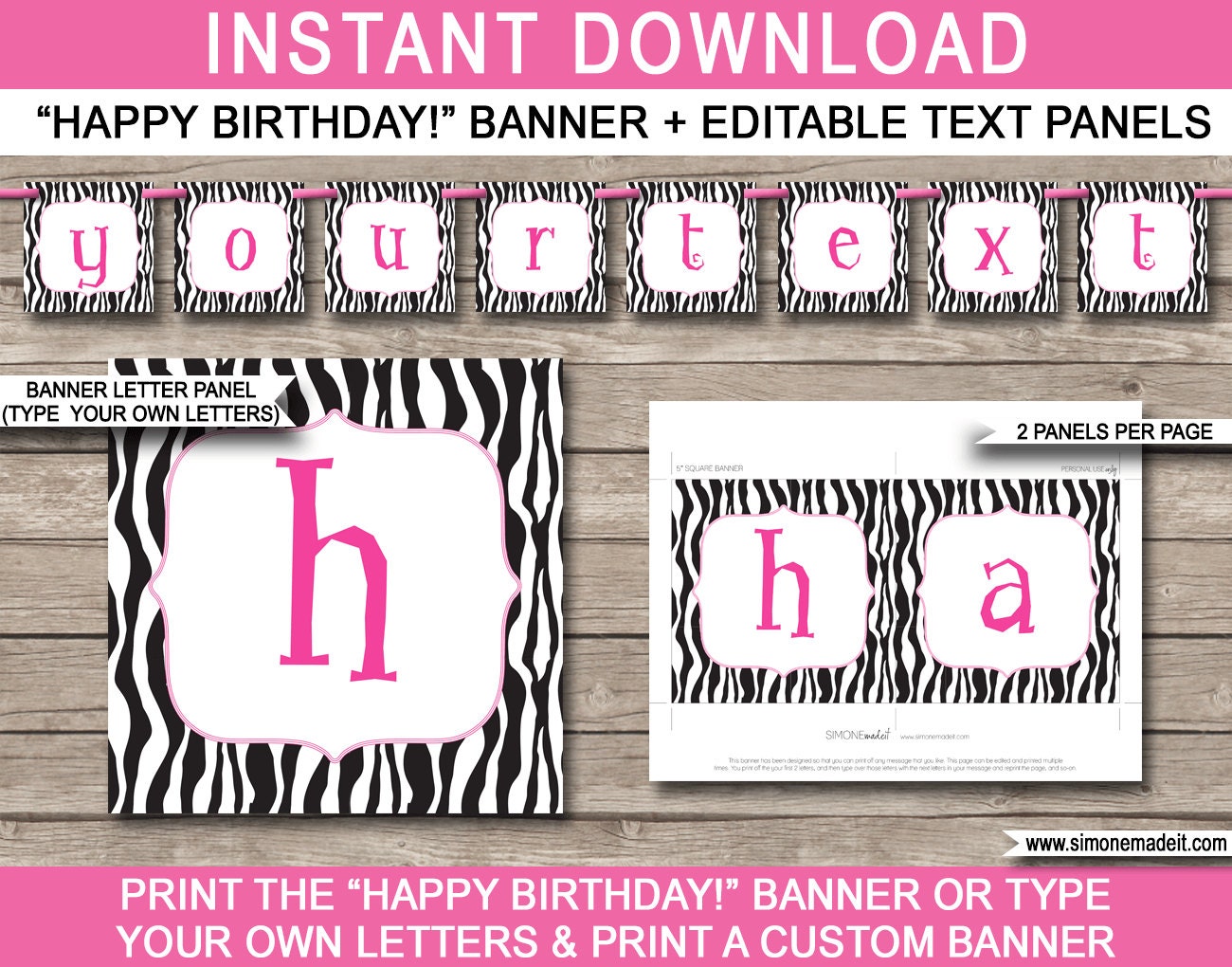 Zebra Birthday Banner Happy Birthday Banner Custom Banner Etsy